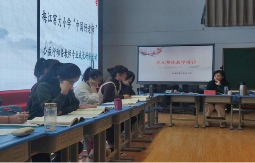 南开区教研员田恬老师结合两位老师的教学设计进行了精彩的点评并对低年级和中年级语文单元整体教学提出了宝贵的指导建议。田老师指出低年级以识字、写字为主,从“音、形、意”三个方面掌握生字,引导学生自主发现记忆规律。备课时要先分析本课所在单元位置,确定本单元所要达成的目标,围绕教学目标开展教学活动。在课文教时可将语文园地内容与教材内容进行整合。中年级在已有低年级理解词语和句子的基础上,要侧重阅读教学任务。要加强对学生进行概括自然段大意和文章的主要内容的训练。结合本单元特点和读写一体化的设计理念,让学生读故事类文章时建立线索和概念:角色——时间——地点——事件,借助线索帮助学生了解课文内容。全体语文教师通过本次教学研讨活动对单元整体教学得到了更深刻的认识,并引发新的教学思考,感觉受益匪浅。