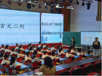 第二环节:我校四年级组韩洋洋老师执教了统编版四年级上册《文言文二则》。韩老师作为一位有经验的教师,让我们看到了其严谨、利落的授课风格。作为课堂上的领导者,她在合适的时机将课堂交给学生,让学生们收获了学习文言文的方法,同时课堂节奏既紧凑又不失轻松。
