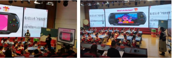 杨璐老师进行新蕾快乐英语第三册Unit 1 Toys的授课。二年级学生天真活泼、求知欲强、模仿力强,但是他们注意力不易长时间集中,机械性操练会让他们很快失去兴趣。因此,教师设置“玩具盒子以及挖东西”这一情境,学生在听、说、唱、玩、演和视听等多种活动形式下,逐步提升学习理解、实践应用、迁移创新的能力。在主题情境中,学生整合性地学习语言知识,可以从颜色、特点、大小等方面介绍自己的玩具,培养语言综合运用能力。