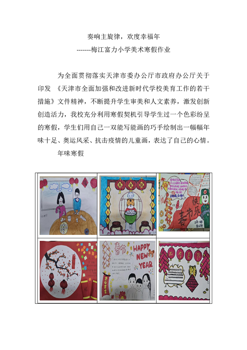奏响主旋律,欢度幸福年 -------梅江富力小学美术寒假作业