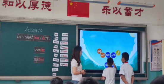 第二节是徐倩老师为大家带来人教精通版英语四年级上册Unit2 Lesson10的授课。徐老师利用旧知引导学生学习新知,同时,魔术游戏的开展使得学生的学习兴趣被充分激起。课堂上,徐老师设计了丰富的内容,在整个教学过程中给予了学生充分的自主探究机会,学生在活动中学习、提升。