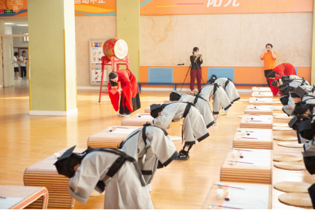 2021年9月10日下午,梅江富力小学举行了以“开蒙启智 扬帆远航”为主题一年级新生入学礼活动。这标志着一年级的小朋友们即将在这里翻开人生崭新的篇章。新一年级的学生在活动中可以深刻体验中华传统文化的洗礼,真正感受到入学是人生中的一件大事,以此激励小朋友们珍惜读书机会、勤奋学习。本次入学礼分为“师正衣冠”、“礼拜孔子”、“朱砂开智”、“开笔写字”、“击鼓鸣志”、“净手净心”、“感恩师长”、“感恩父母”、“经典诵读”九个环节。